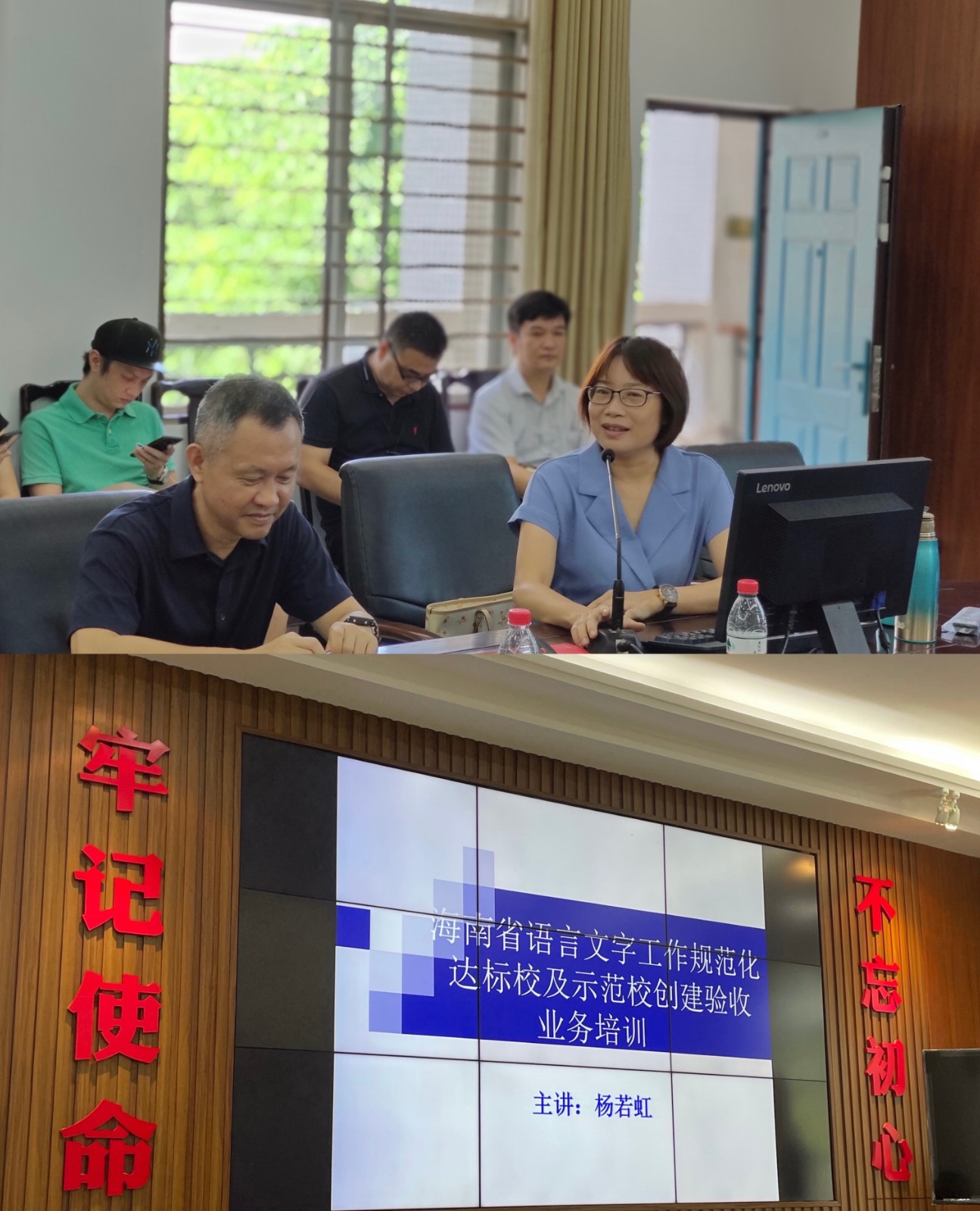 为贯彻落实教育部、国家语委《关于进一步加强学校语言文字工作的意见》(教语用〔2017〕1号)文件精神,海南省教育厅、海南省语言文字工作委员会将于2021年6月3日对我校创建语言文字规范化达标校进行验收。为做好本次验收准备工作,我校特邀请国家级普通话水平测试员、海南师范大学杨若虹副教授来我校开展“语言文字工作规范化达标校及示范校创建验收工作业务培训”专题讲座。