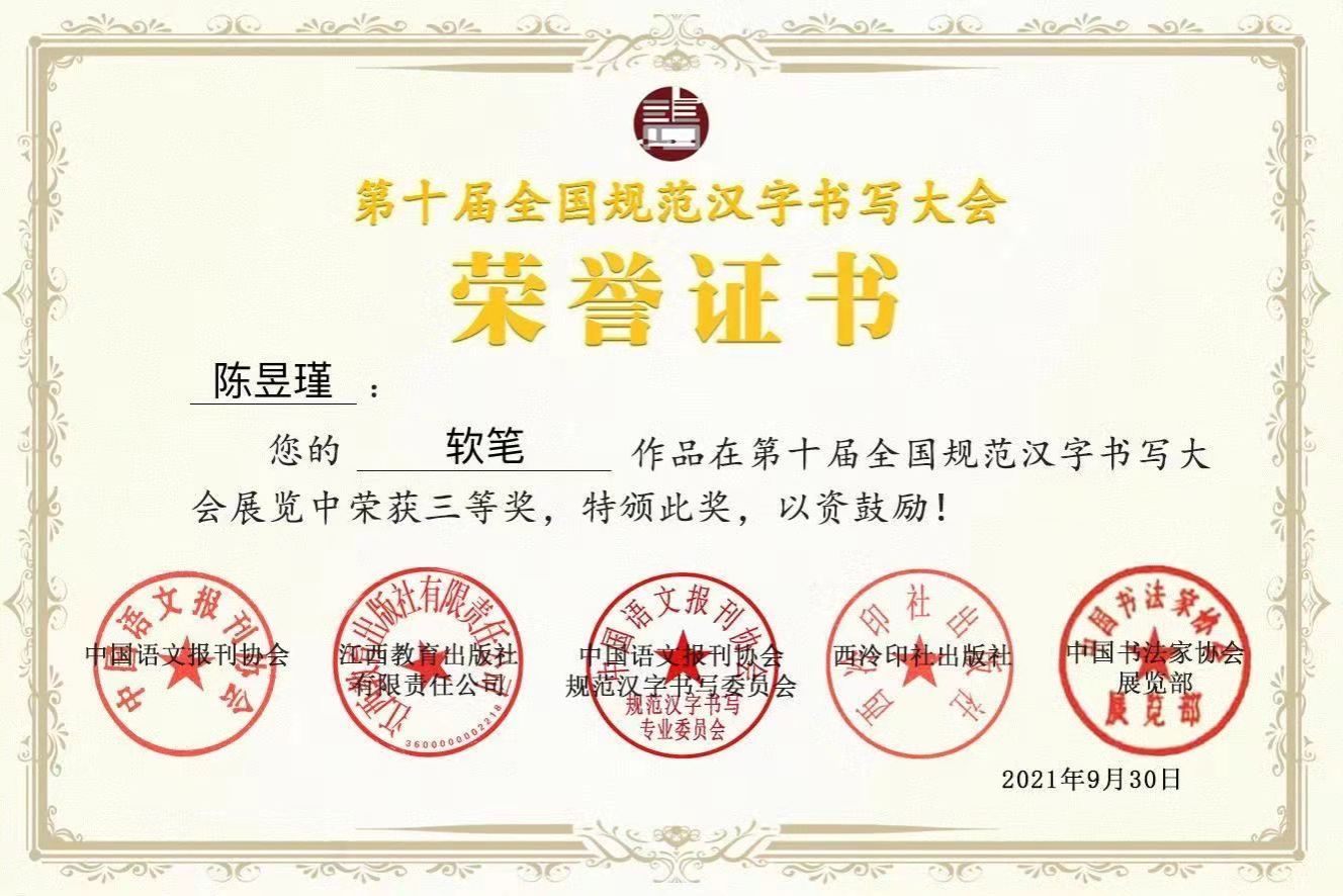 第十届全国规范字大赛全国赛获奖情况