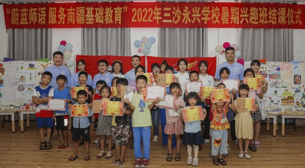 “蔚蓝师语”志愿支教团队是第一个在永兴岛开展拥军共建主题活动的支教团队,深入一线共建军民文化艺术生活。支教活动内容丰富、节奏紧凑、秩序井然,高强度的团队支教工作锻炼了团队成员协作能力,大学生们也充分领会了驻岛军警部队为祖国守好南大门的实干担当精神,感受到了三沙人民爱党爱国爱家爱海洋的家国情怀,感知三沙人矢志不渝建设海岛的奉献精神。志愿服务实践育人,调动了大学生积极参与海岛支教的积极性和创造性,挥洒志愿服务热情,为祖国南疆建设贡献青春力量,在三沙援建中实现“强国有我”。